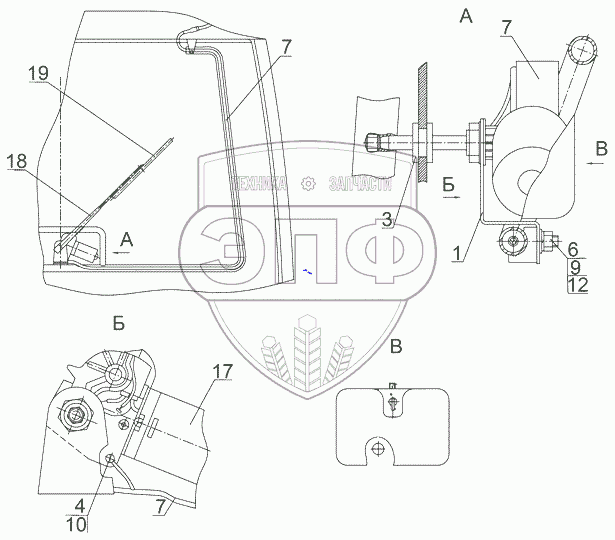 Каталог запасных частей к технике: МТЗ 1523.5 с ГМТ. Установка заднего стеклоочистителя