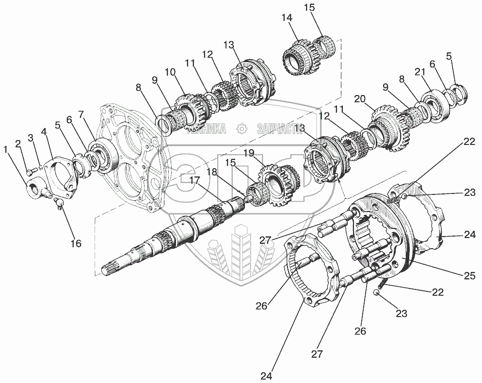 Каталог запасных частей к технике: МТЗ 1523.5 с ГМТ. Вал первичный