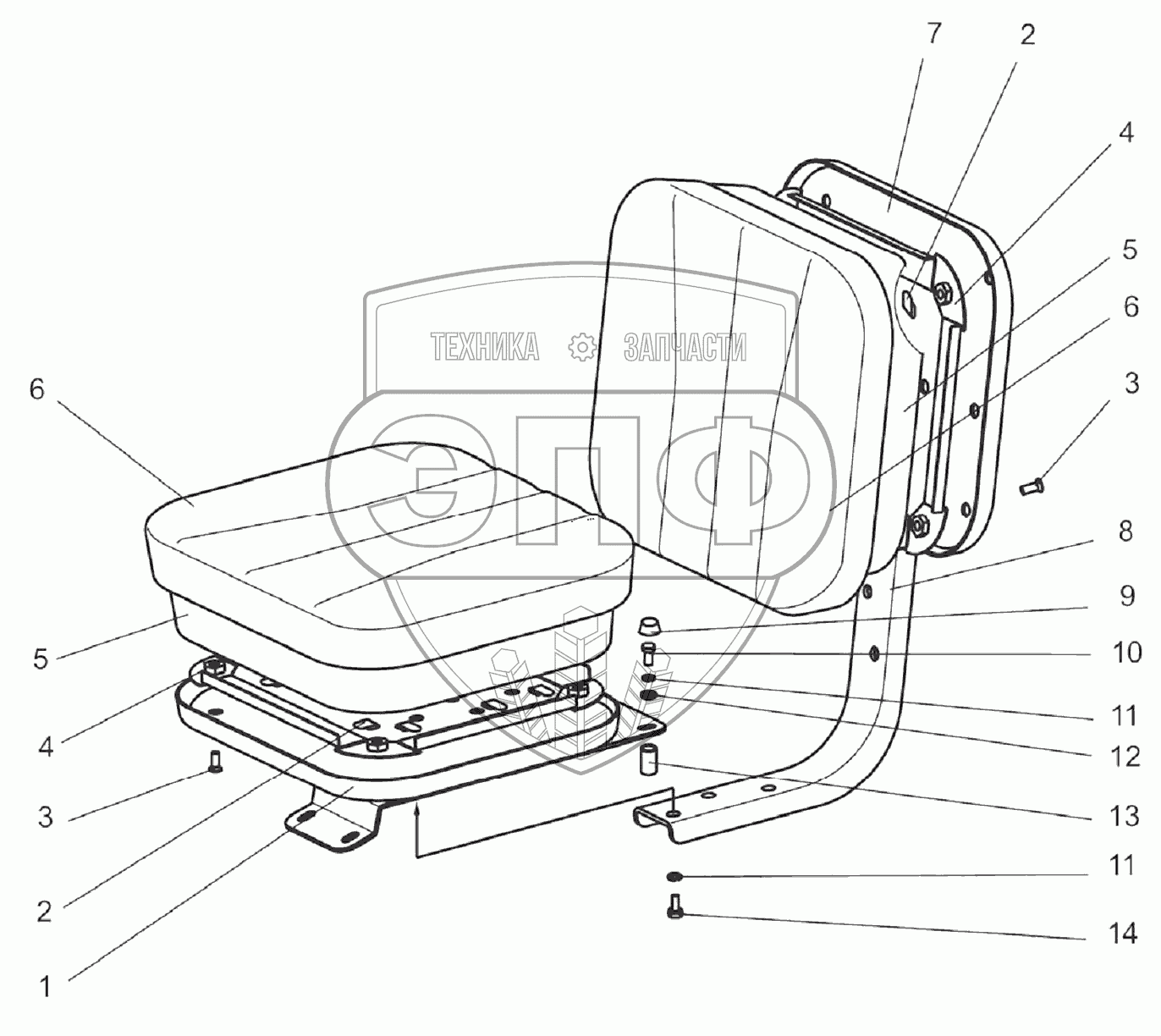 Каталог запасных частей к технике: МТЗ 3022ДЦ.1. Сиденье дополнительное