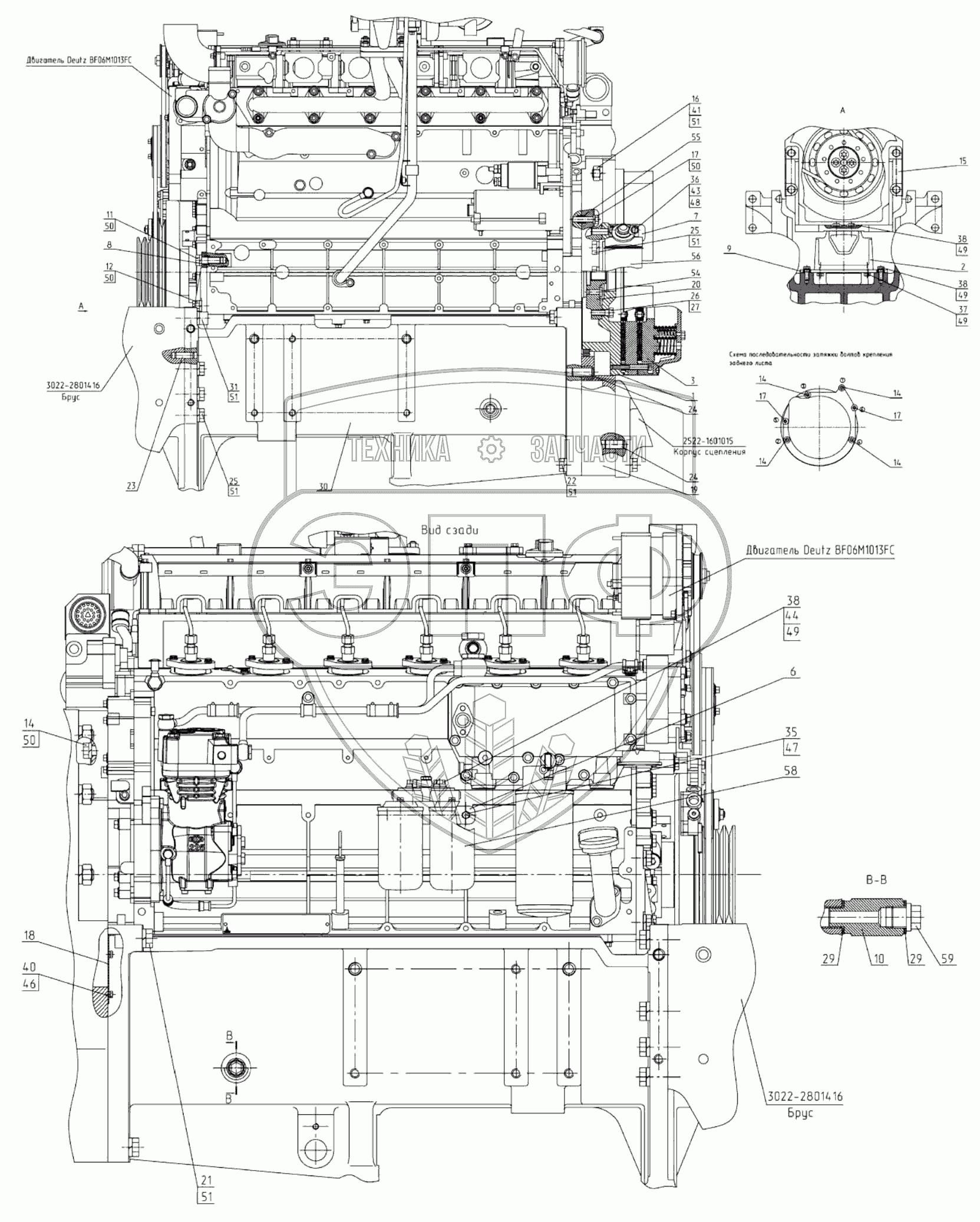 Каталог запасных частей к технике: МТЗ 3022ДЦ.1. Установка дизеля