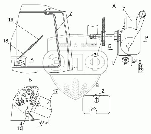 Каталог запасных частей к технике: МТЗ 3022ДЦ.1. Установка заднего стеклоочистителя