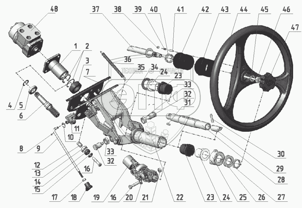 Каталог запасных частей к технике: МТЗ 622. Колонка рулевая