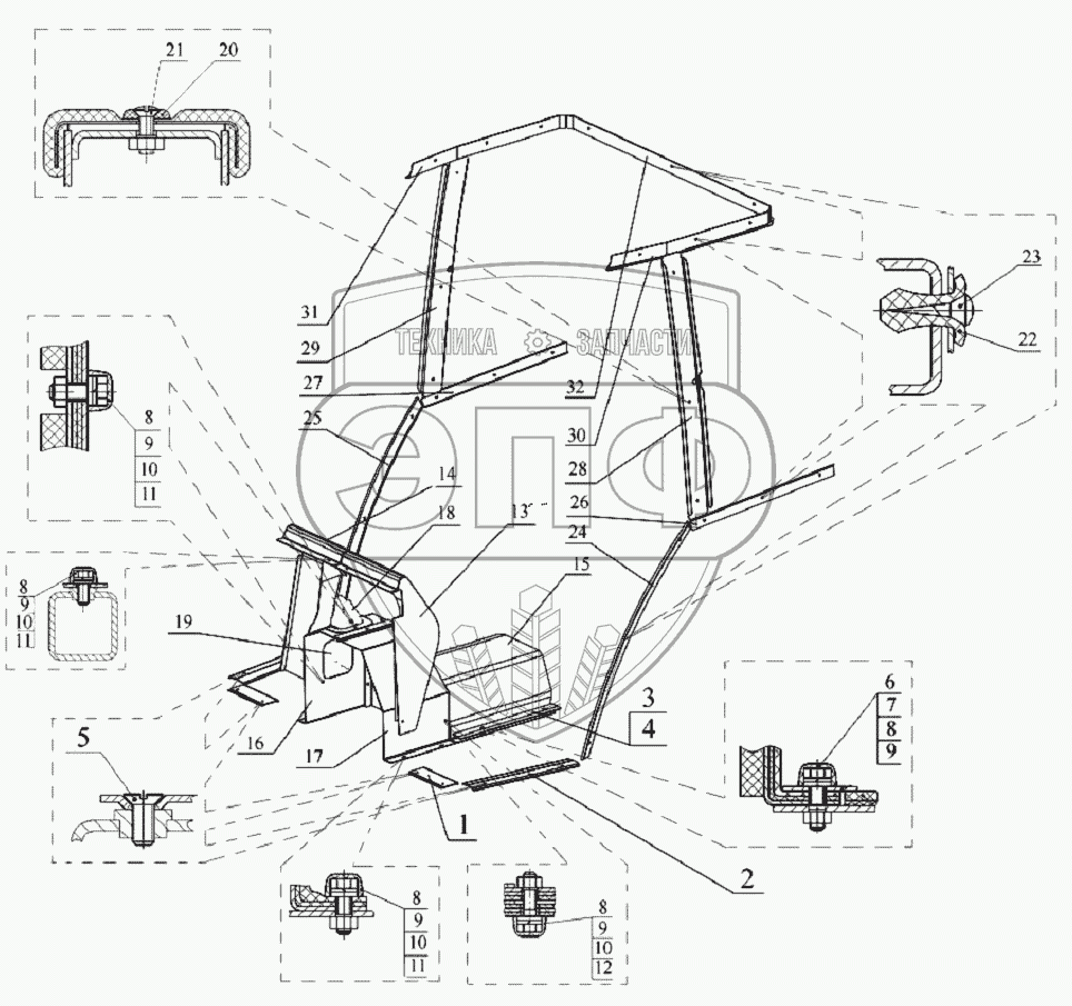 Каталог запасных частей к технике: МТЗ 622. Основание кабины