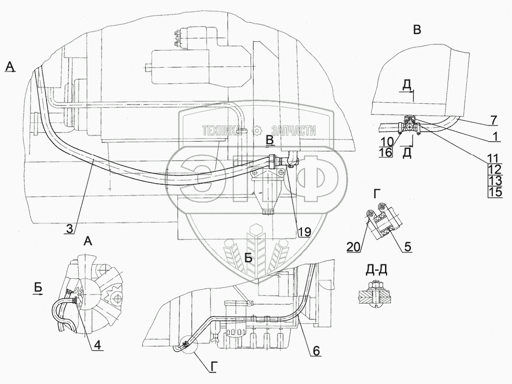 Каталог запасных частей к технике: МТЗ 622. Трасса шлангов отопителя