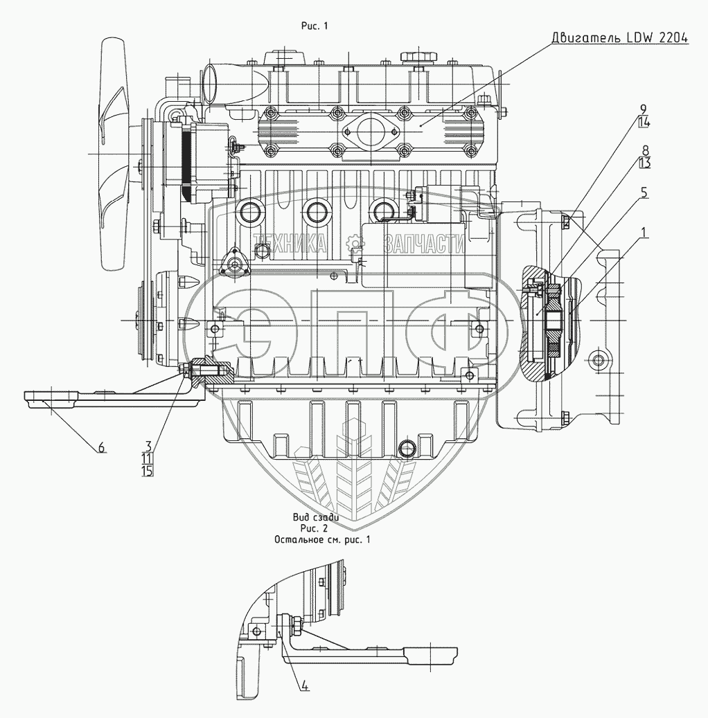 Каталог запасных частей к технике: МТЗ 622. Установка двигателя