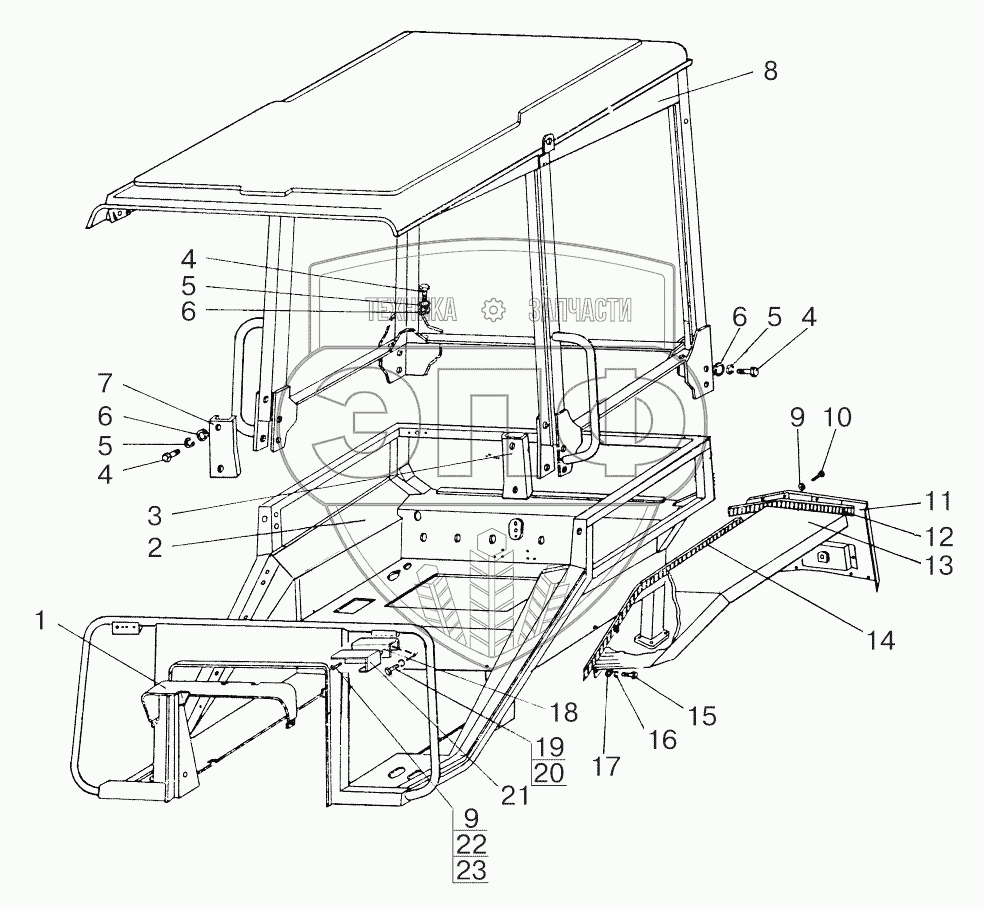 Каталог запасных частей к технике: МТЗ 800/900. Тент-каркас. Основание