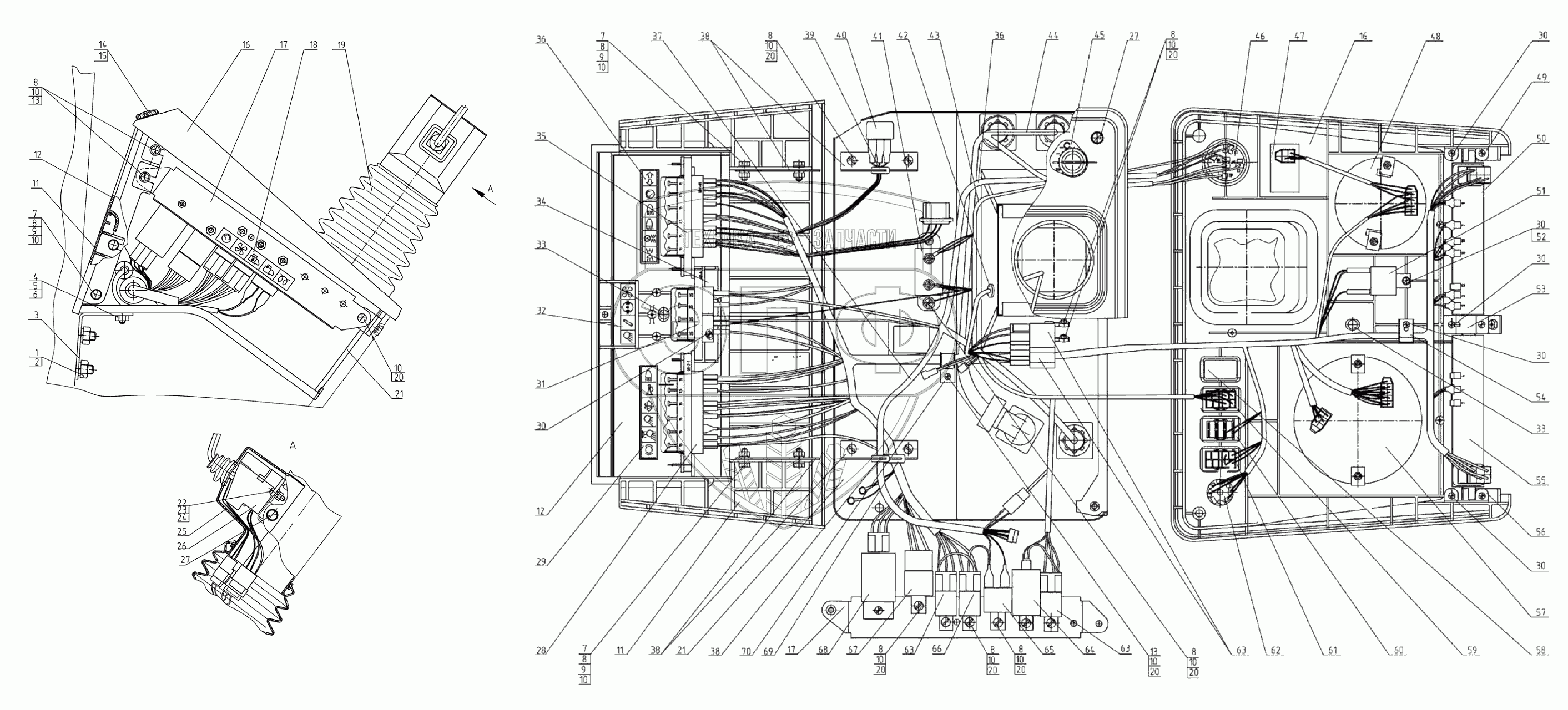 Каталог запасных частей к технике: МТЗ 80Х. Щиток приборов в развернутом виде