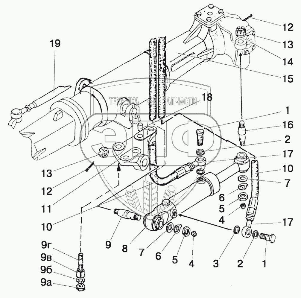 Каталог запасных частей к технике: МТЗ 892. Гидроцилиндр Ц63 и арматура ГОРУ
