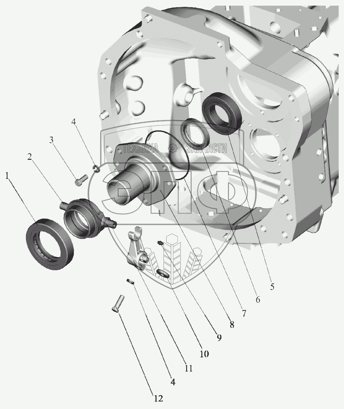 Каталог запасных частей к технике: МТЗ 892. Корпус сцепления. Отводка.