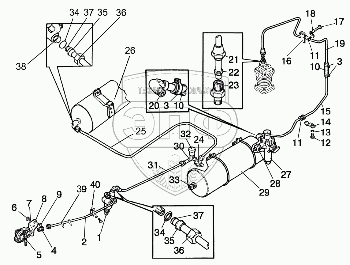 Каталог запасных частей к технике: МТЗ 892. Трубопроводы и арматура однопроводного пневмопривода тормозов