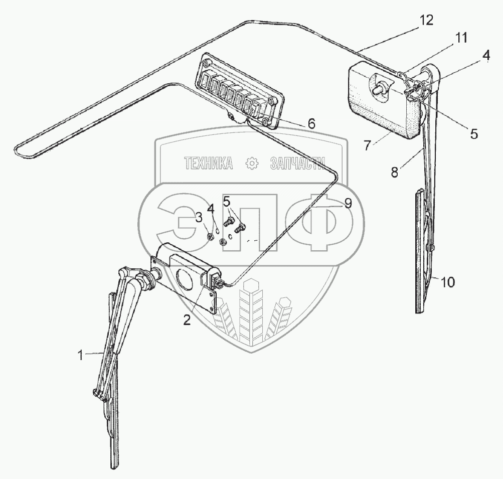 Каталог запасных частей к технике: МТЗ 892. Установка стеклоочистителя