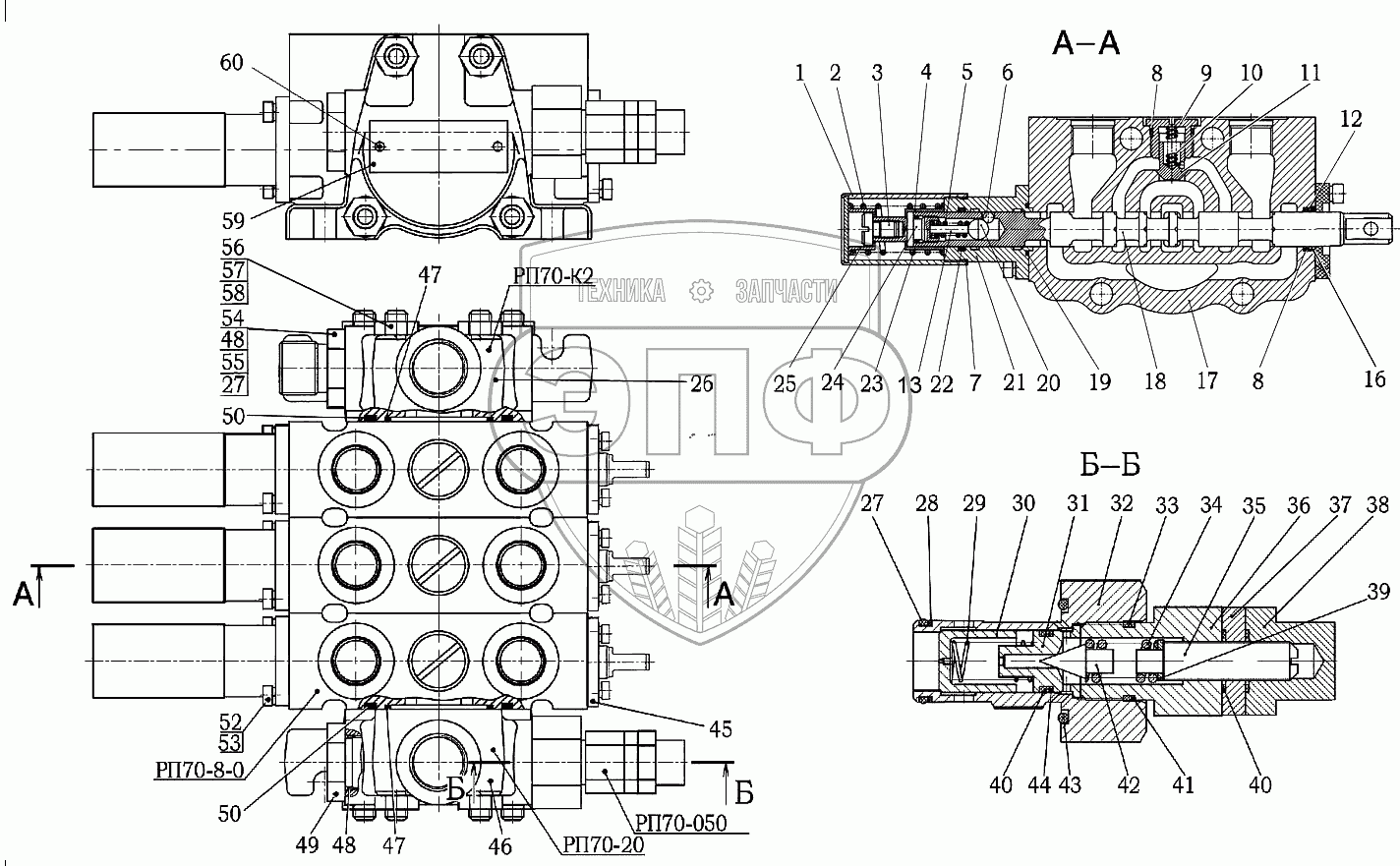 Каталог запасных частей к технике: МТЗ 922.3 / 922.4. Гидрораспределитель РП70