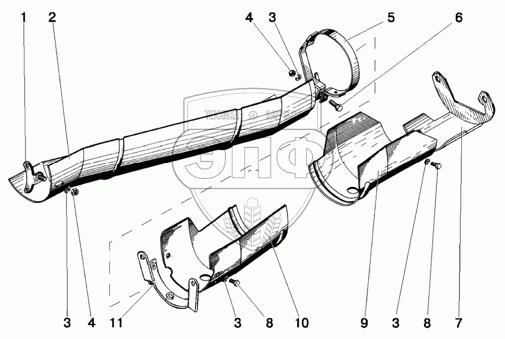 Каталог запасных частей к технике: МТЗ 922.3 / 922.4. Ограждение карданного привода