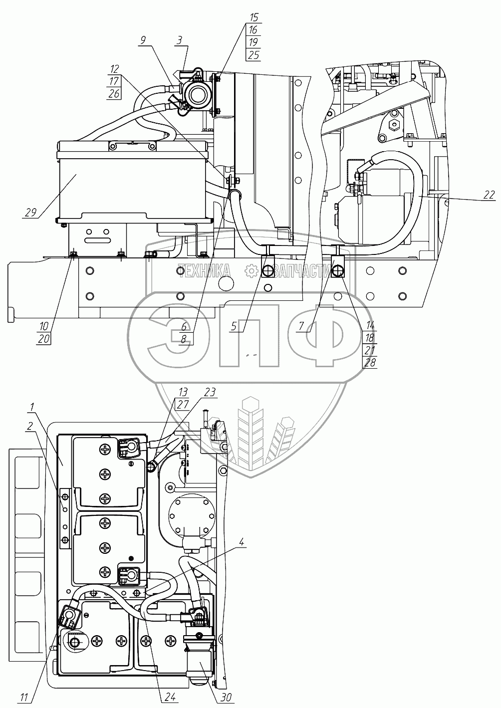 Каталог запасных частей к технике: МТЗ 922.3 / 922.4. Установка батарей аккумуляторных