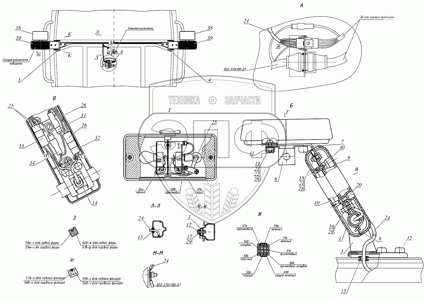 Каталог запасных частей к технике: МТЗ 922.3 / 922.4. Установка фонарей передних