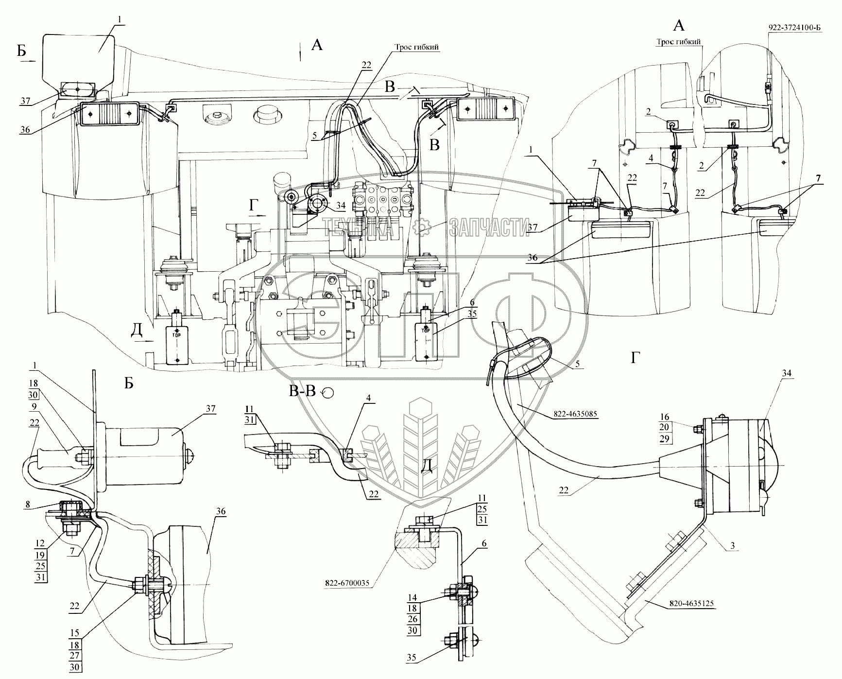 Каталог запасных частей к технике: МТЗ 922.3 / 922.4. Установка фонарей задних