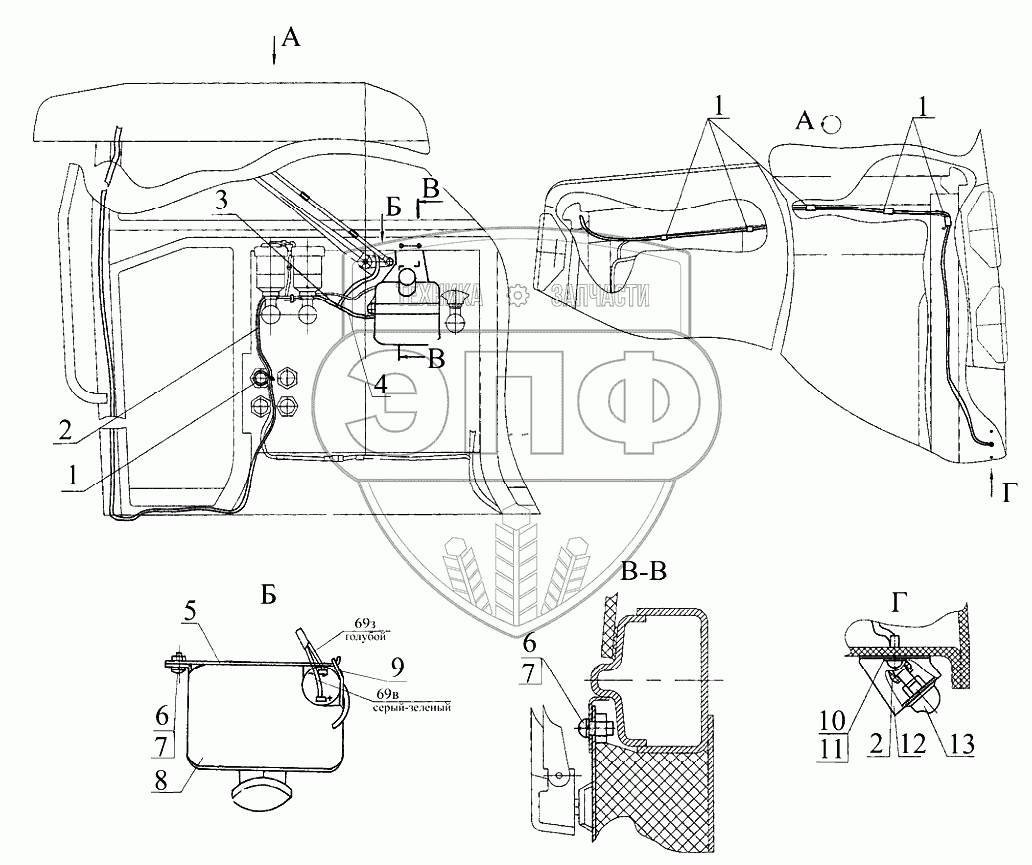 Каталог запасных частей к технике: МТЗ 922.3 / 922.4. Установка стеклоомывателя