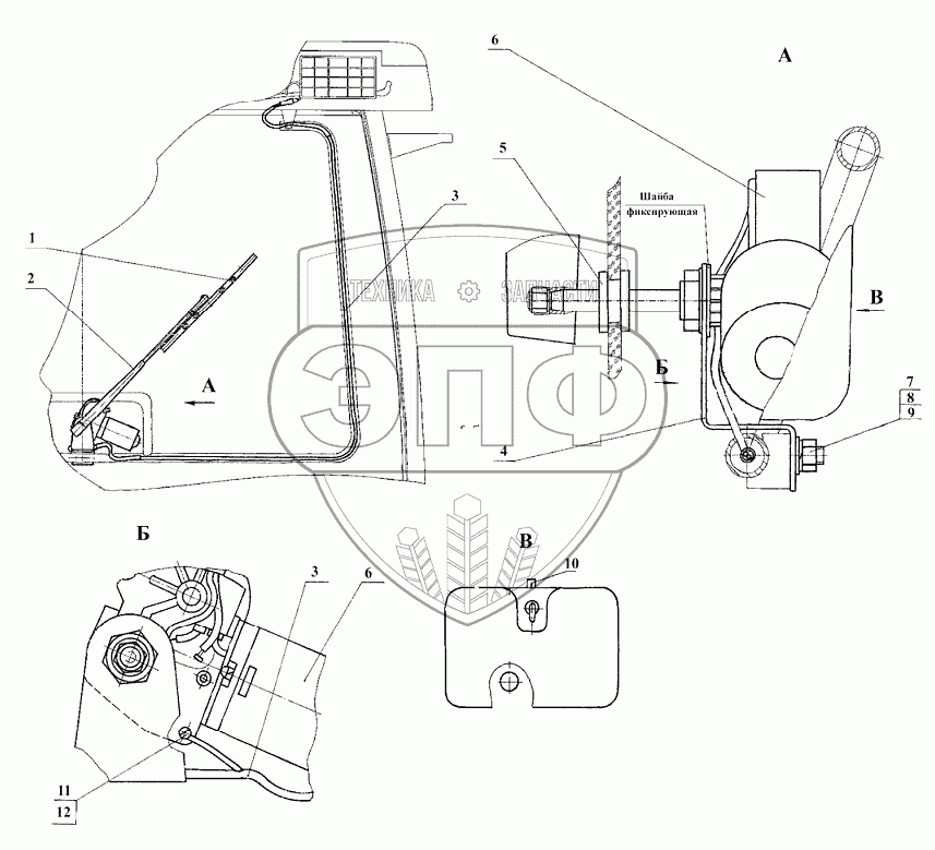 Каталог запасных частей к технике: МТЗ 922.5. Установка стеклоочистителя заднего