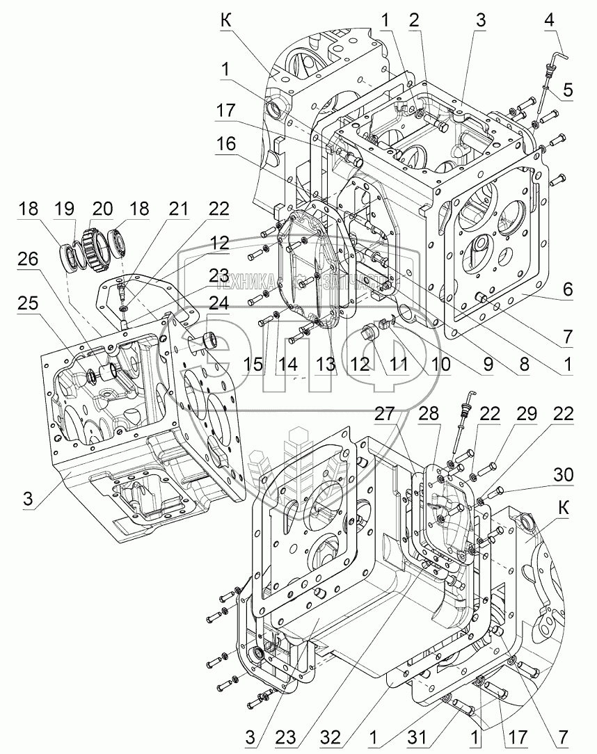 Каталог запасных частей к технике: МТЗ 923.5. Корпус КП. Привод ПВМ