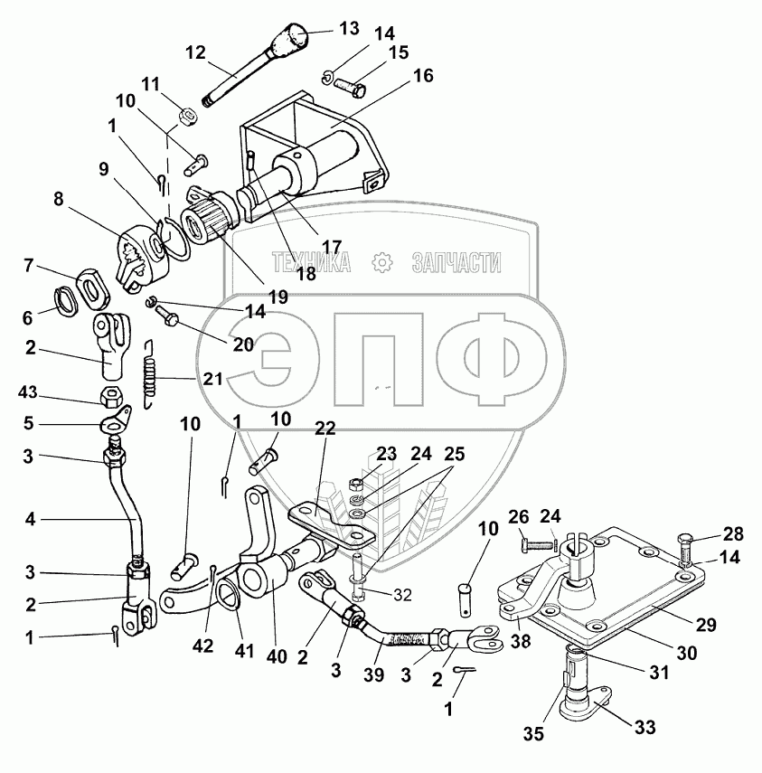 Каталог запасных частей к технике: МТЗ 923.5. Управление синхронизированным редуктором/ускорителем