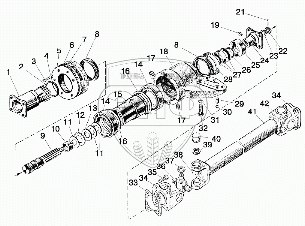 Каталог запасных частей к технике: МТЗ 92П. Привод карданный. Промежуточная опора карданного вала