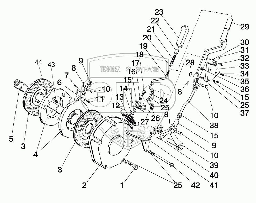 Каталог запасных частей к технике: МТЗ 92П. Тормоз стояночный. Управление стояночным тормозом