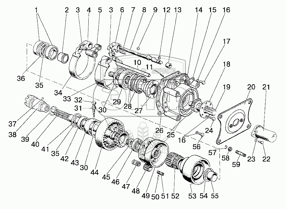 Каталог запасных частей к технике: МТЗ 92П. Вал отбора мощности задний