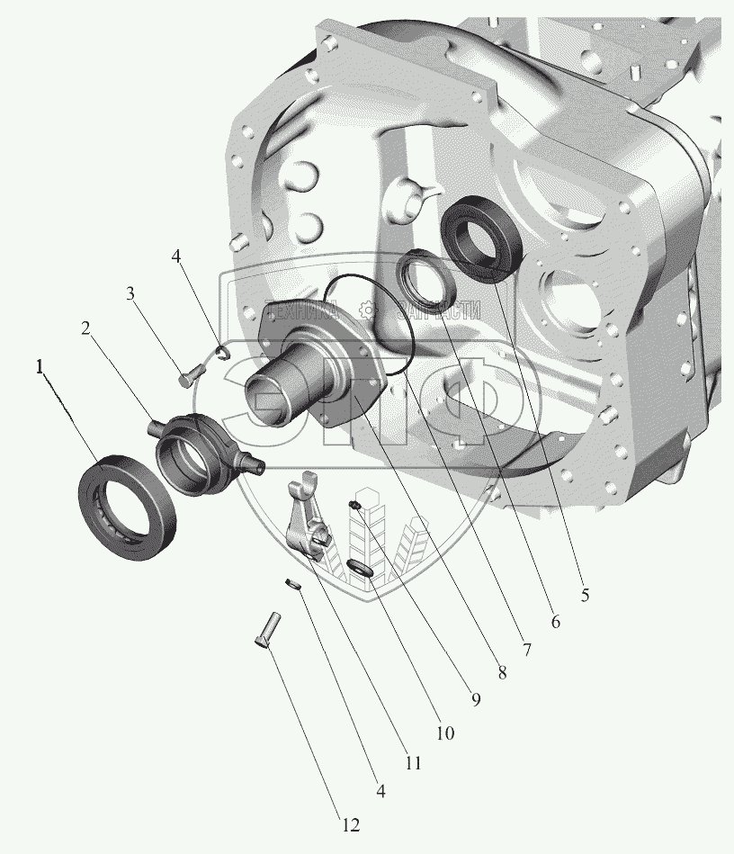 Каталог запасных частей к технике: МТЗ 952.5. Корпус сцепления. Отводка.