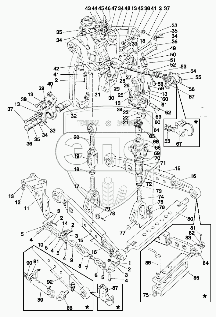 Каталог запасных частей к технике: МТЗ 952.5. Механизм задней навески
