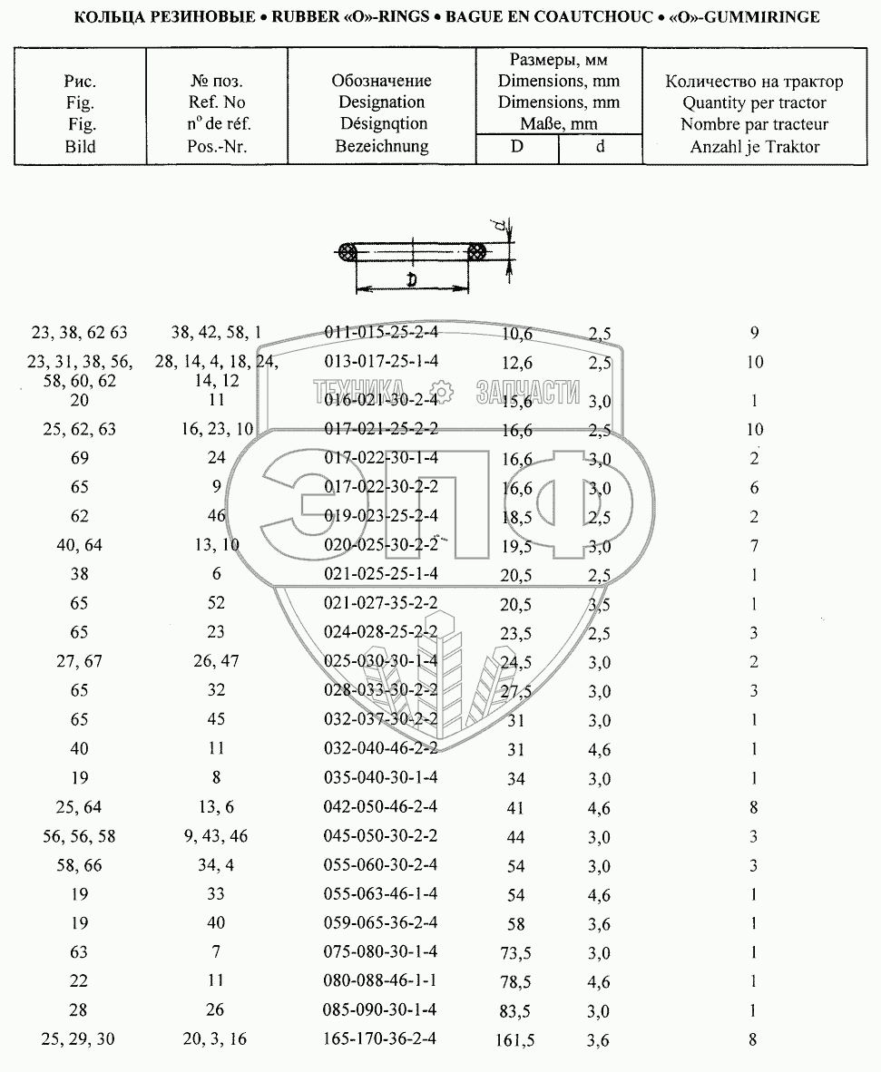 Каталог запасных частей к технике: МТЗ БЕЛАРУС 320. Кольца резиновые;Rubber O-Rings
