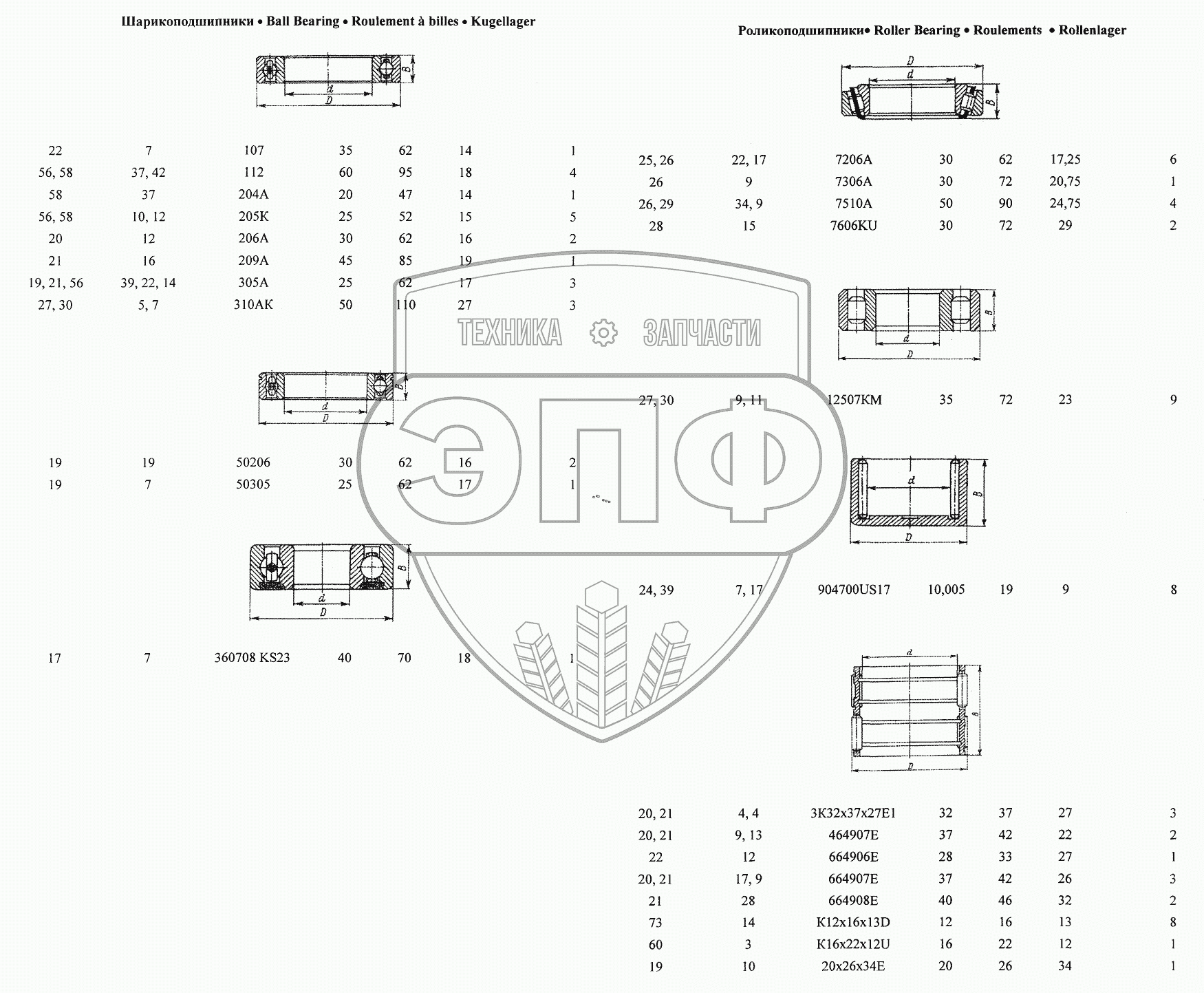 Каталог запасных частей к технике: МТЗ БЕЛАРУС 320. Подшипники;Bearing