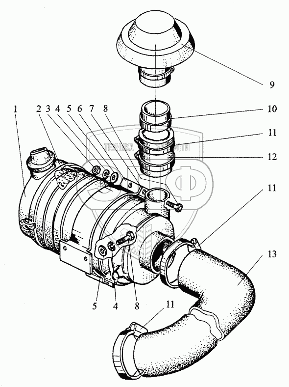 Каталог запасных частей к технике: МТЗ БЕЛАРУС 320. Тракт воздухопроводящий;Air Intake Piping
