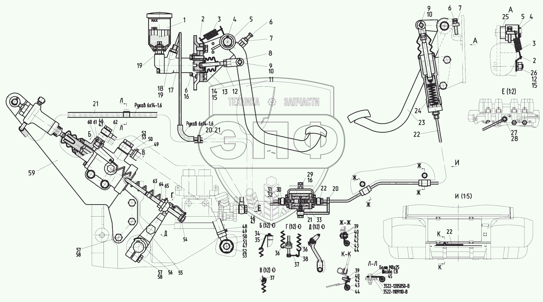 Каталог запасных частей к технике: МТЗ БЕЛАРУС 3522.5. Управление сцеплением