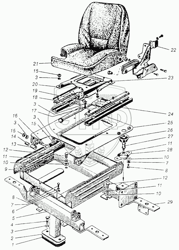 Каталог запасных частей к технике: МТЗ-082. Сиденье 082-6800