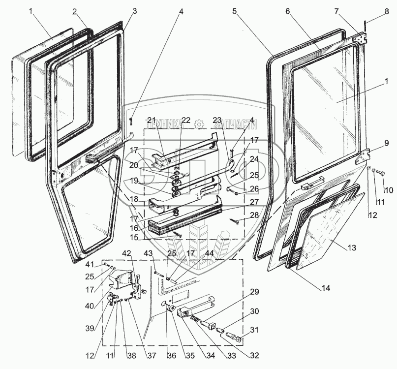 Каталог запасных частей к технике: МТЗ-1005. Двери кабины