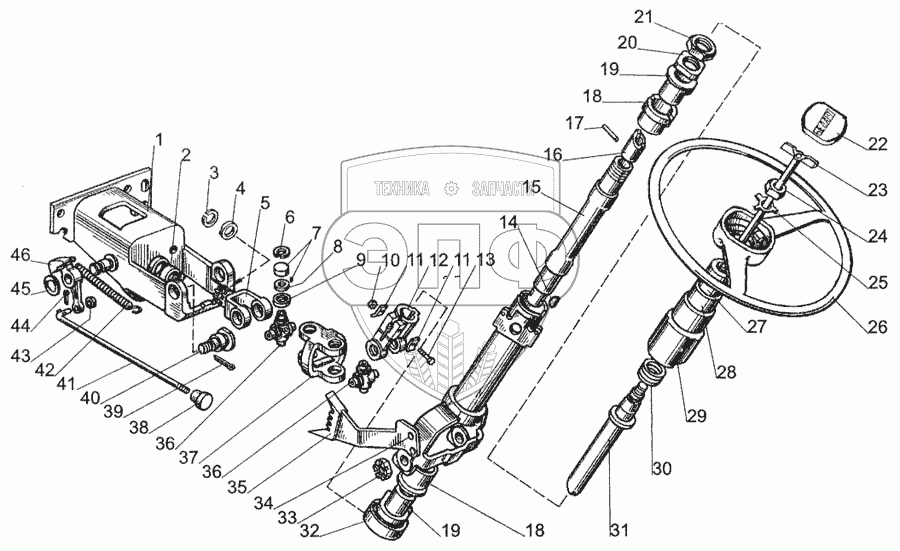 Каталог запасных частей к технике: МТЗ-1005. Привод рулевого механизма