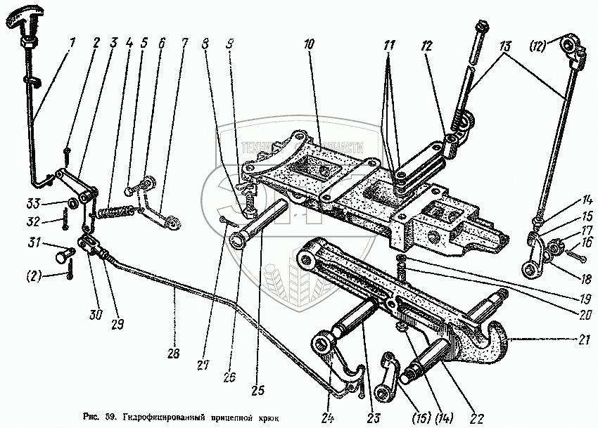 Каталог запасных частей к технике: МТЗ-100. Гидрофицированный прицепной крюк