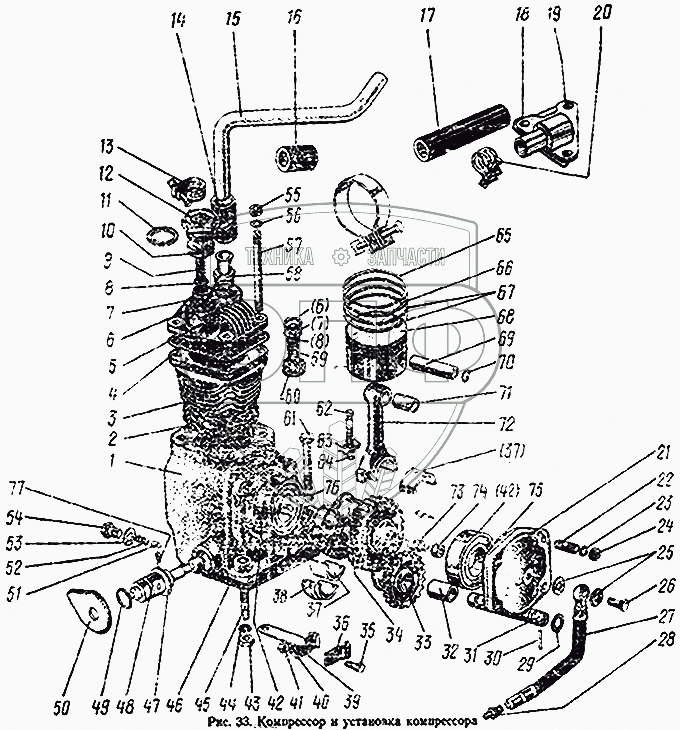 Каталог запасных частей к технике: МТЗ-100. Компрессор и установка компрессора