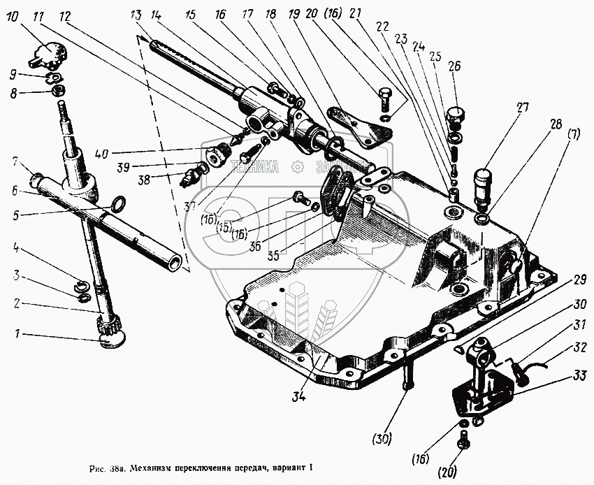 Каталог запасных частей к технике: МТЗ-100. Механизм переключения передач (вариант 1)
