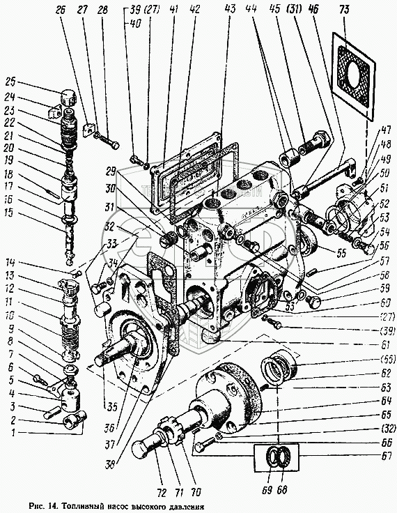 Каталог запасных частей к технике: МТЗ-100. Насос топливный высокого давления