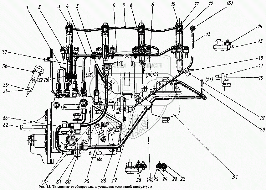 Каталог запасных частей к технике: МТЗ-100. Топливные трубопроводы и установка топливной аппаратуры