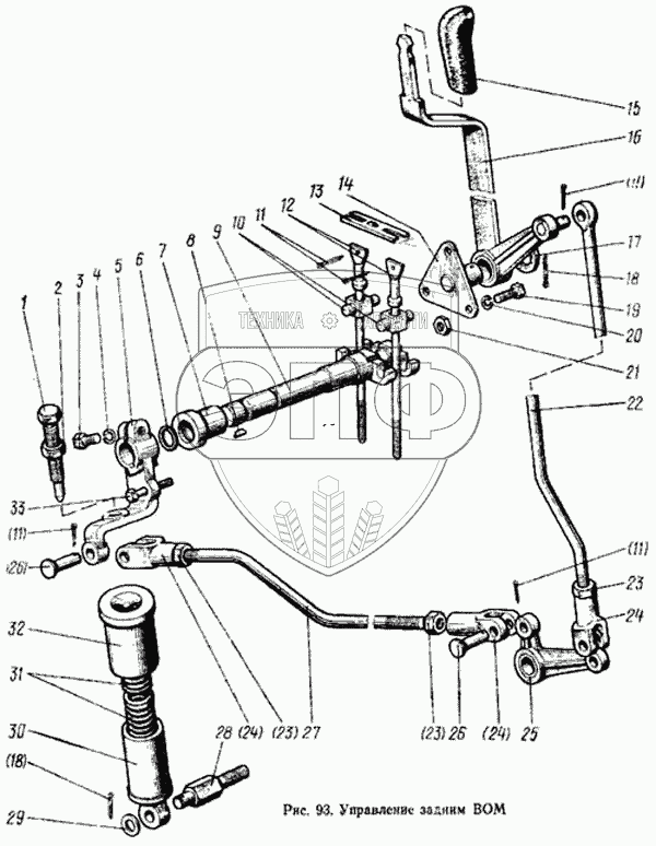 Каталог запасных частей к технике: МТЗ-100. Управление задним ВОМ
