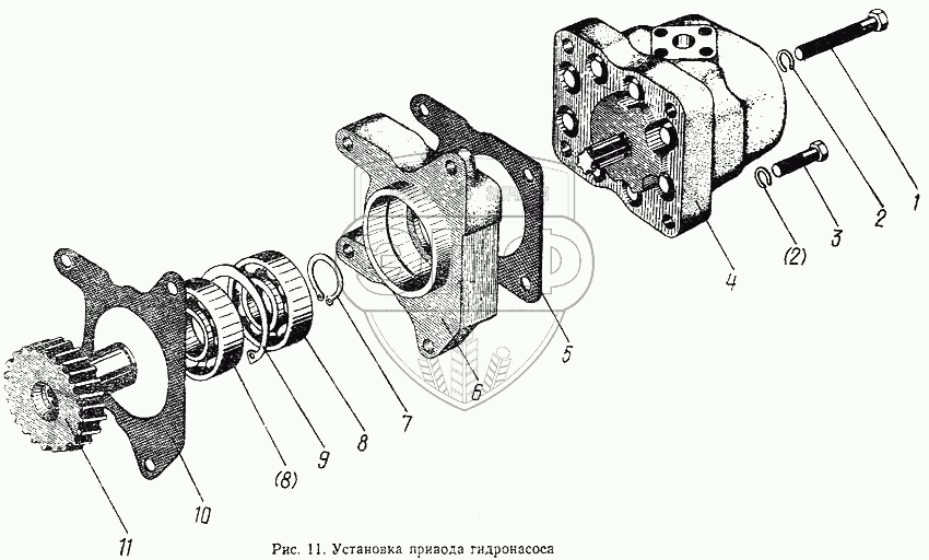 Каталог запасных частей к технике: МТЗ-100. Установка привода гидронасоса