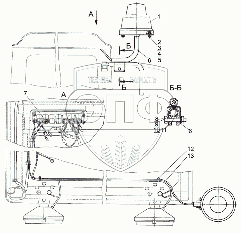 Каталог запасных частей к технике: МТЗ-1021.3. Установка маяка сигнального