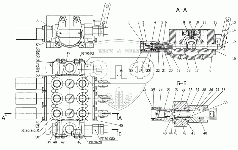 Каталог запасных частей к технике: МТЗ-1025.4. Гидрораспределитель РП70