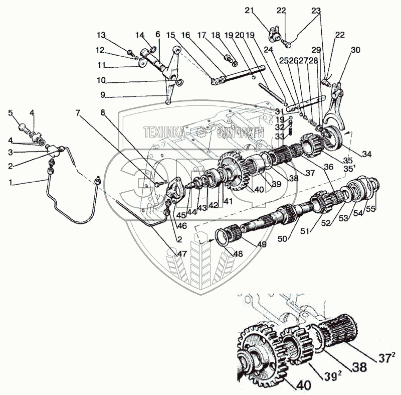 Каталог запасных частей к технике: МТЗ-1025.4. Вал пониженных передач