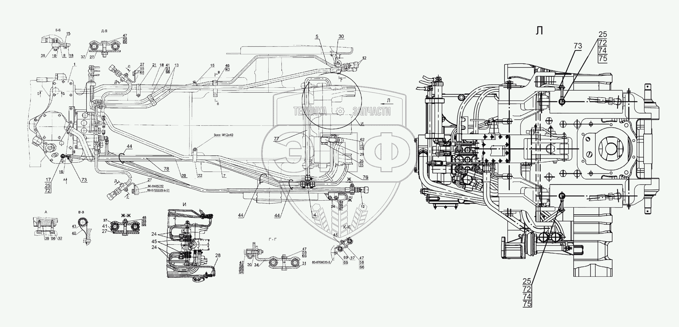 Каталог запасных частей к технике: МТЗ-1221.4. Гидросистема Р1221-4600010
