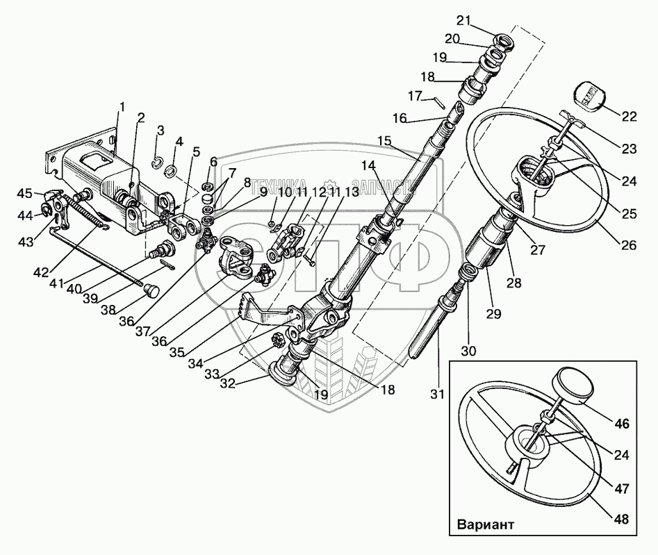 Каталог запасных частей к технике: МТЗ-1221.4. Колонка рулевая