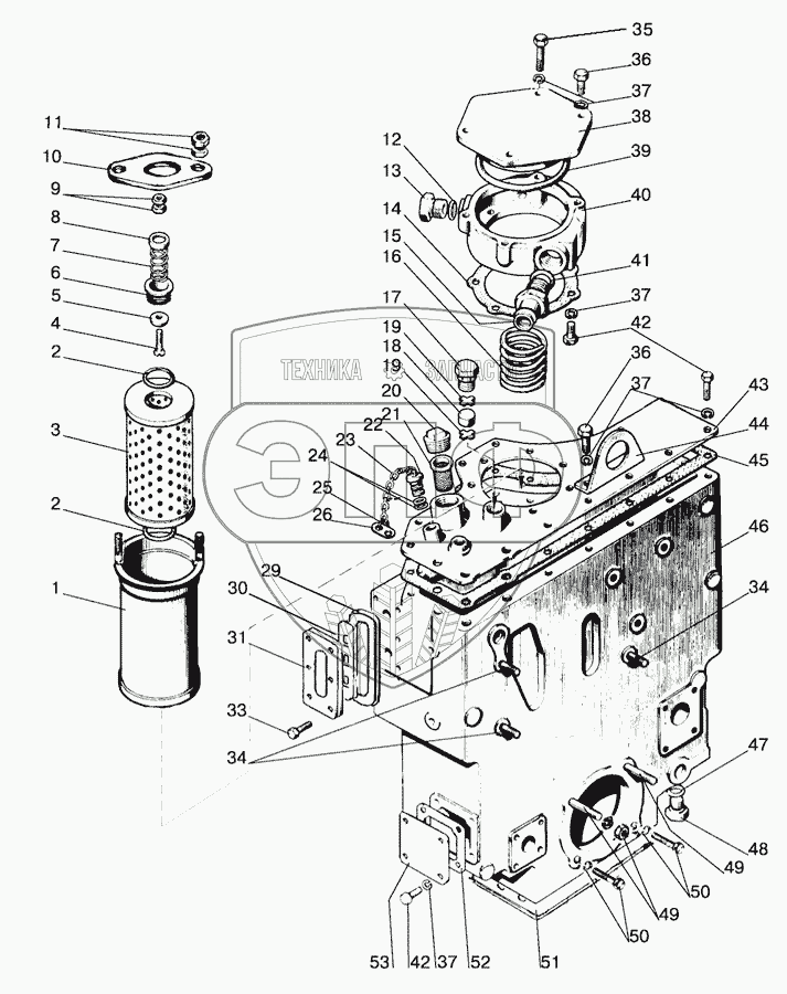 Каталог запасных частей к технике: МТЗ-1221.4. Корпус гидросистемы и фильтр