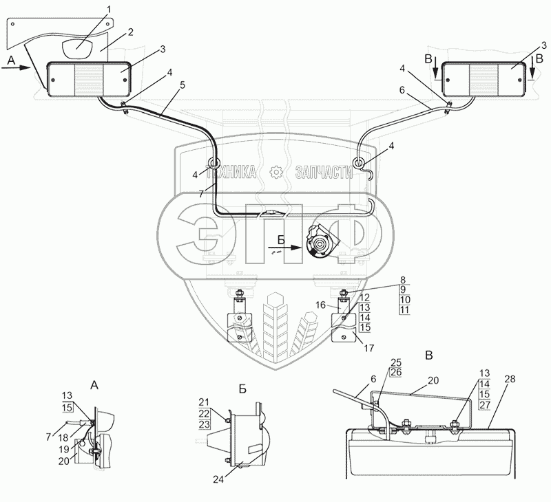 Каталог запасных частей к технике: МТЗ-1221.4. Установка фонарей задних